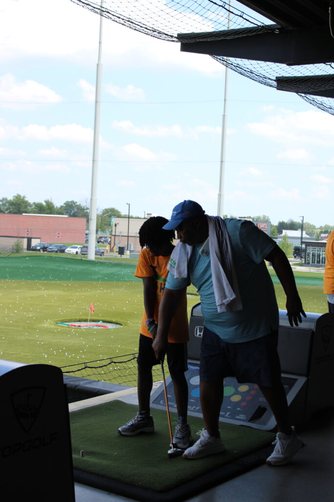 Coach Johnnie helps KOH students with their swings at Topgolf